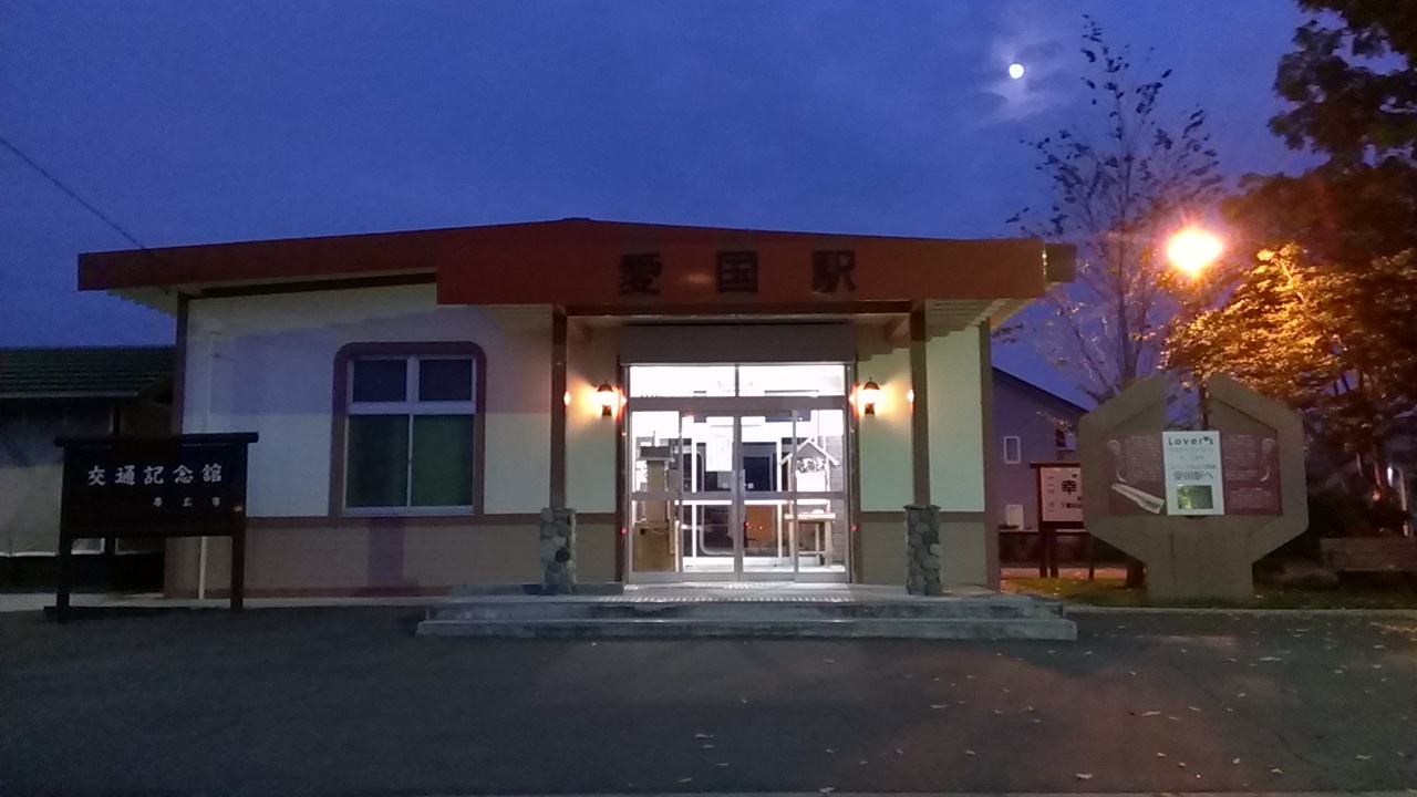 中札内村寄りの帯広市に、名スポットの幸福駅と愛国駅発見。