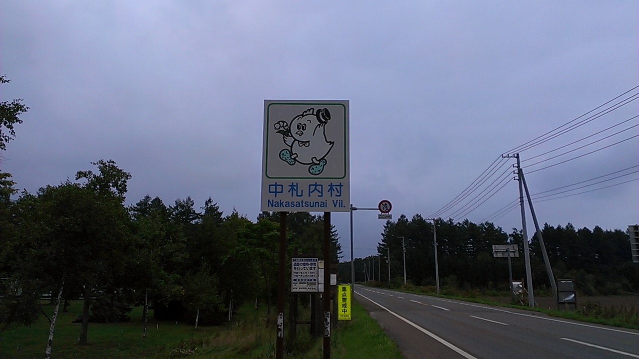 中札内村のカントリーサインは、ゆるキャラのピータン。